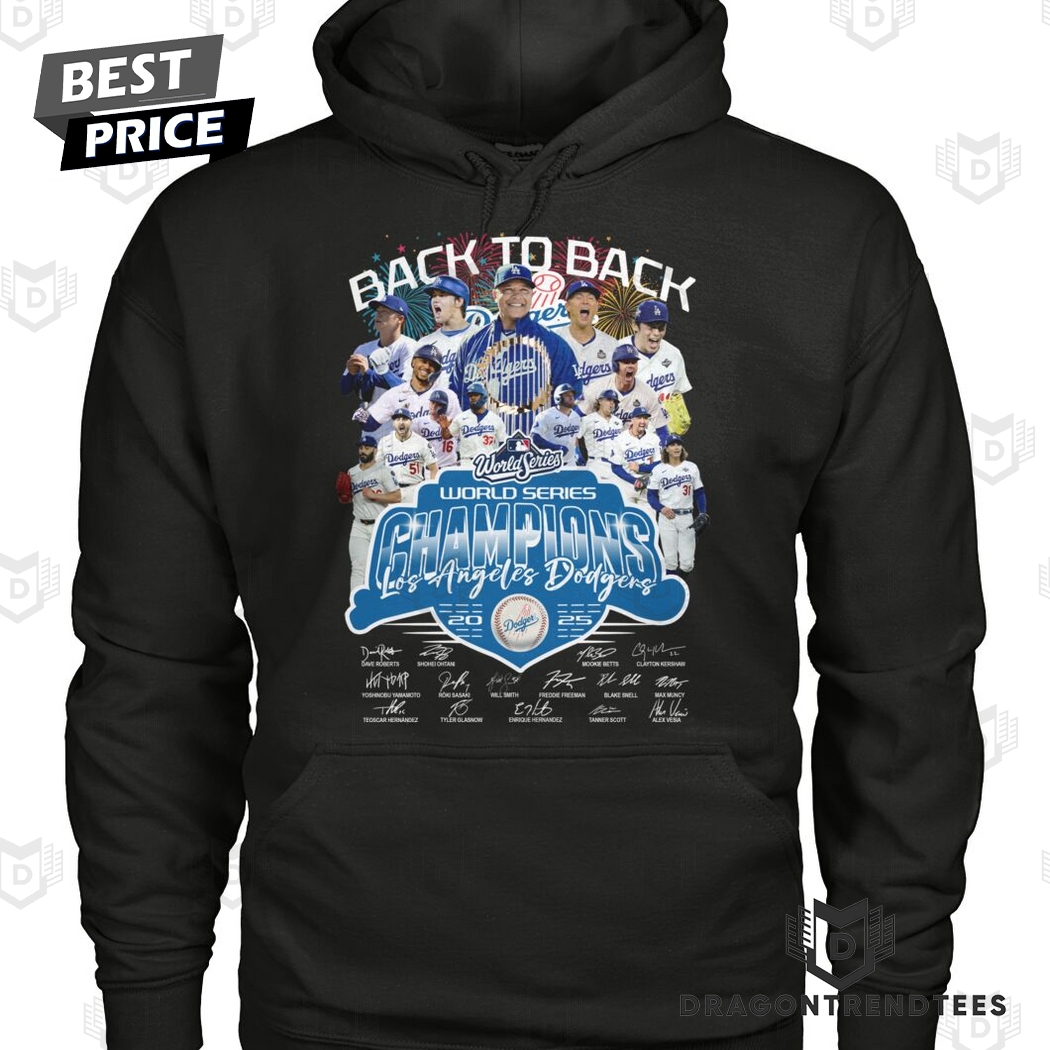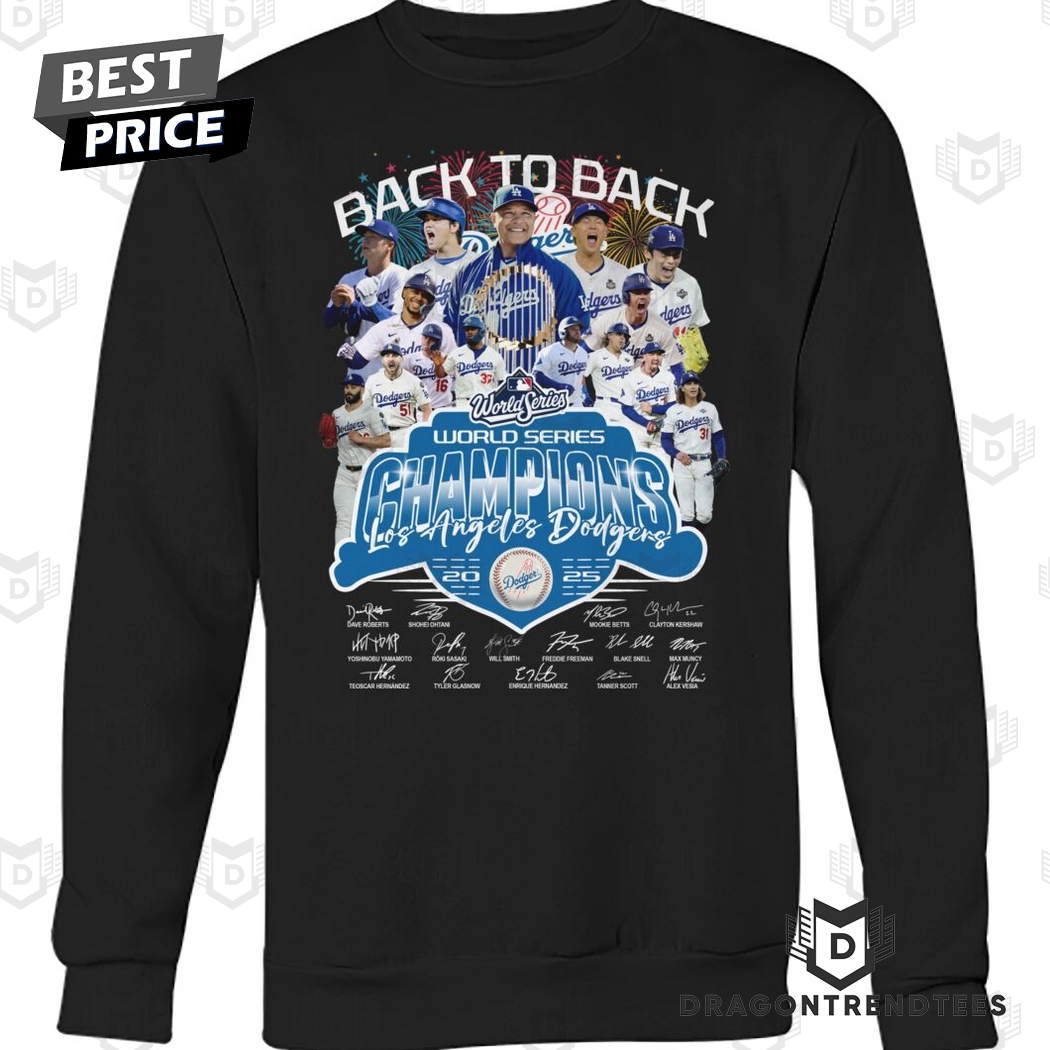 Los Angeles Dodgers Back To Back 2025 World Series Champion Signature Unisex T-Shirt, Hoodie, Ladies, Long Sleeve, Sweatshirt, Mug