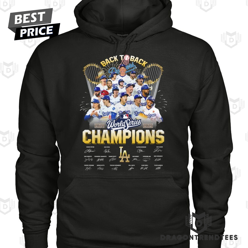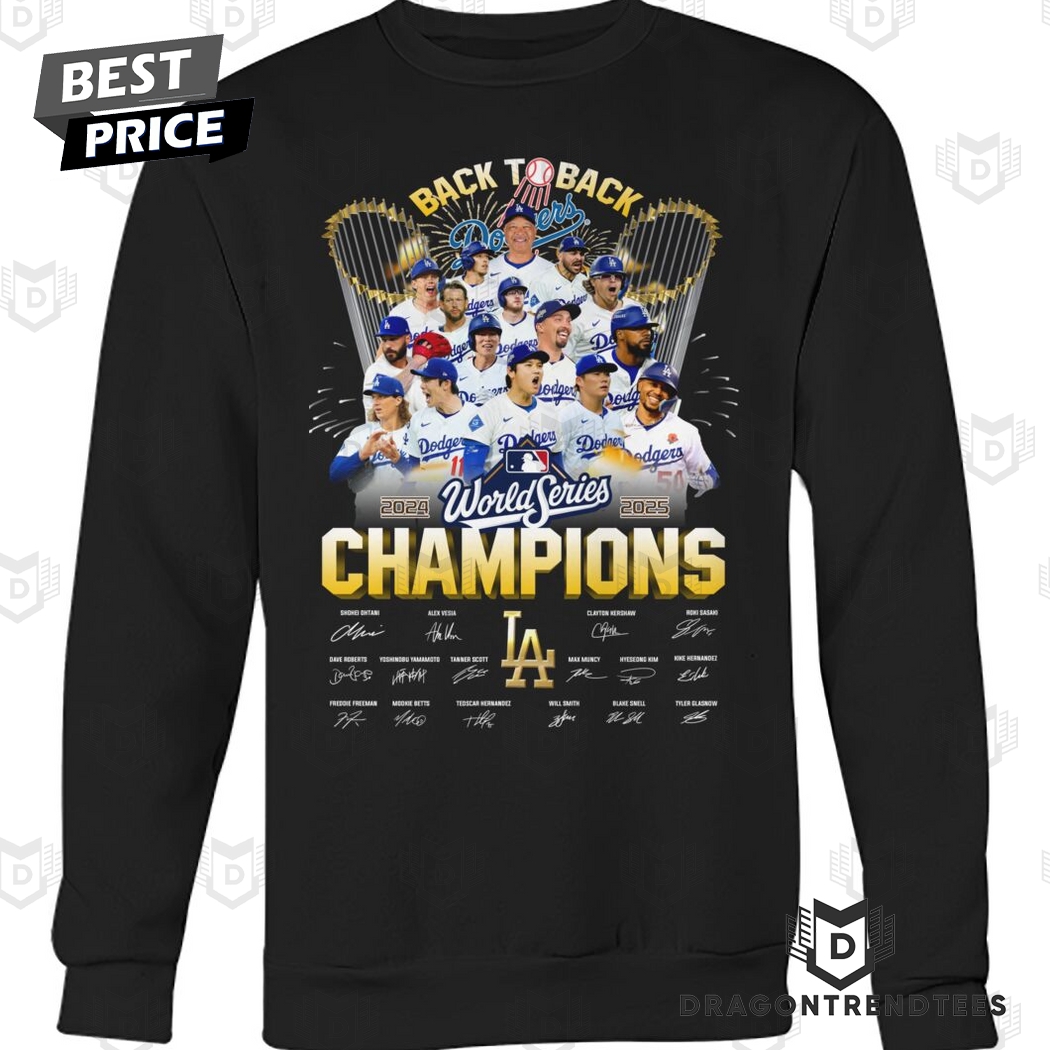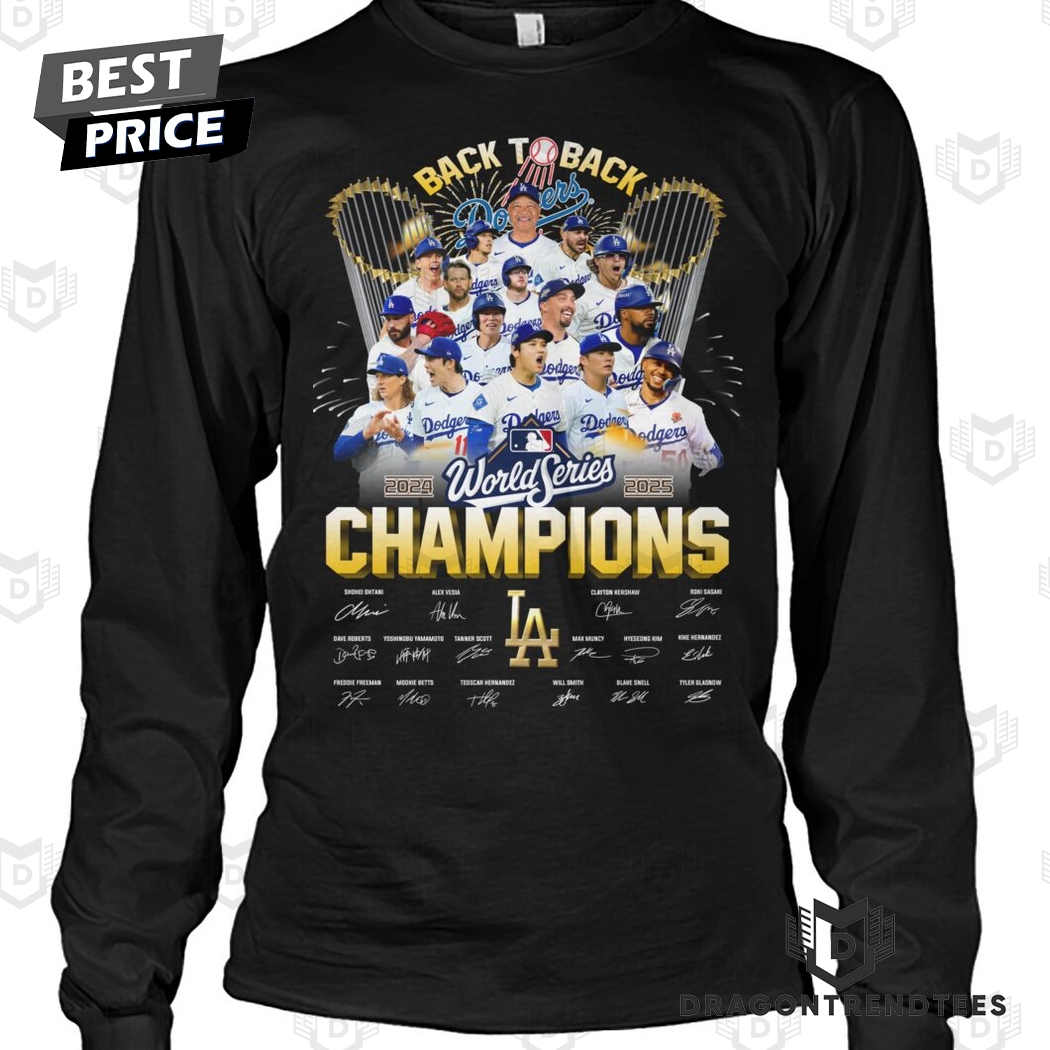 Los Angeles Dodgers Back To Back World Series Champion 2025 Signature Unisex T-Shirt, Hoodie, Ladies, Long Sleeve, Sweatshirt, Mug