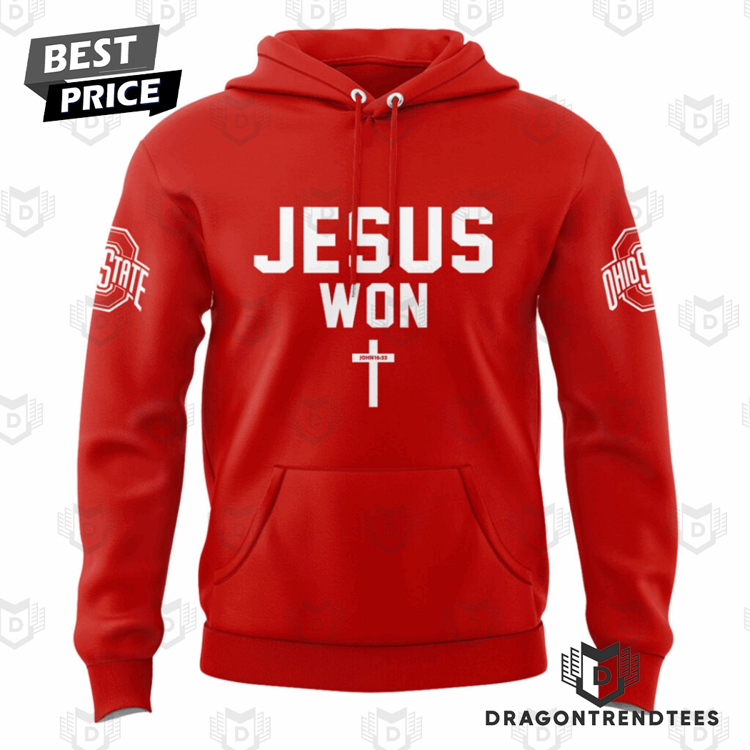 ,Ohio State Buckeyes JESUS WON Just Here To Give God Glory Special Hoodie - Red,Ohio State Buckeyes JESUS WON Just Here To Give God Glory Special Hoodie - Red